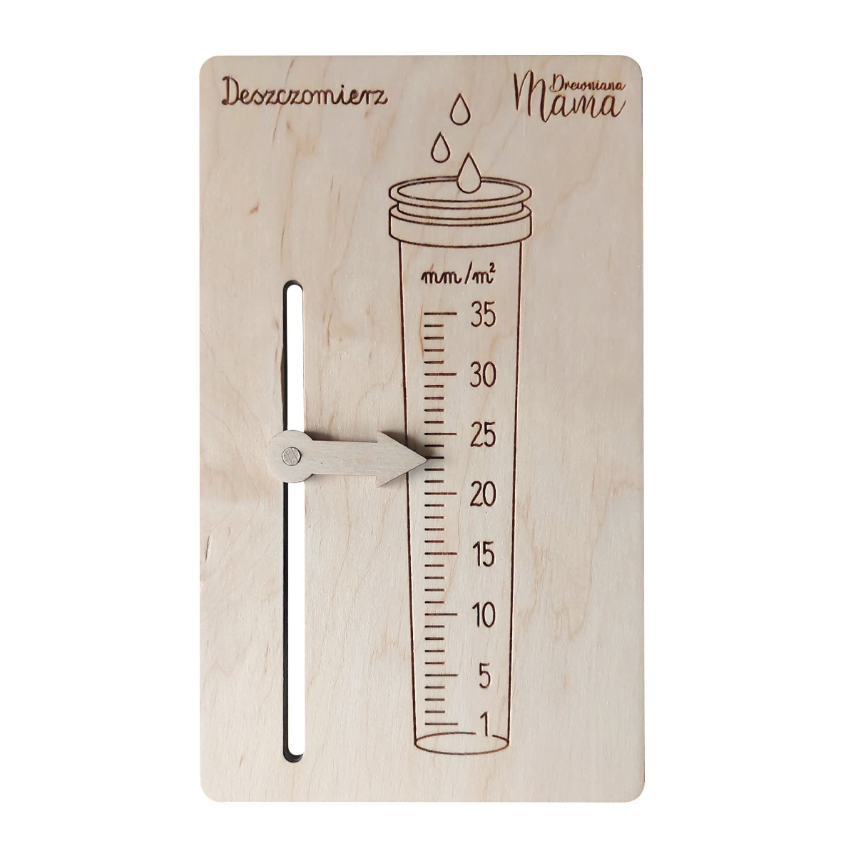 Deszczomierz wykonuję z naturalnego drewna, dzięki czemu jest bezpieczny i ekologiczny, a estetyczny grawer sprawia, że produkt jest trwały i piękny. Jest również wspaniałym uzupełnieniem Obserwatora Pogody.