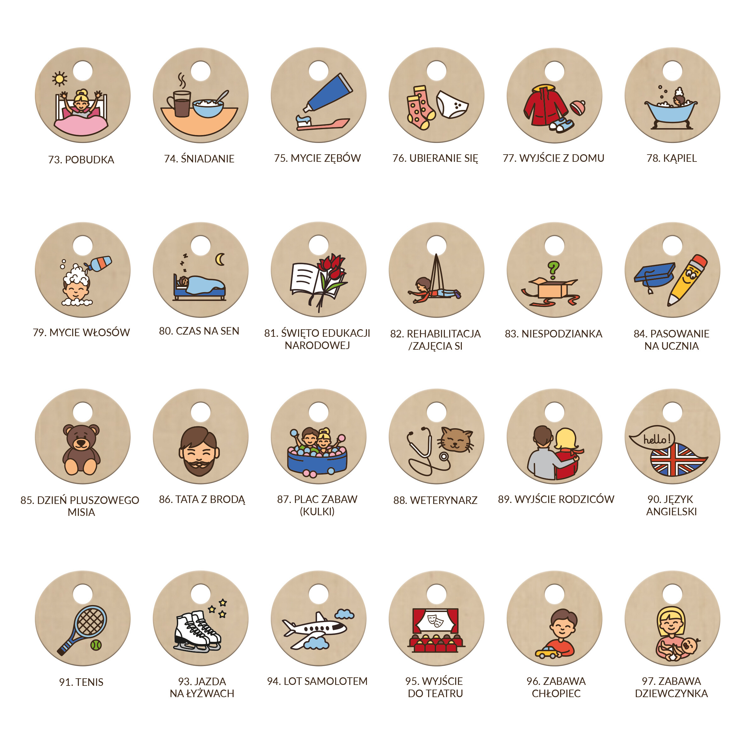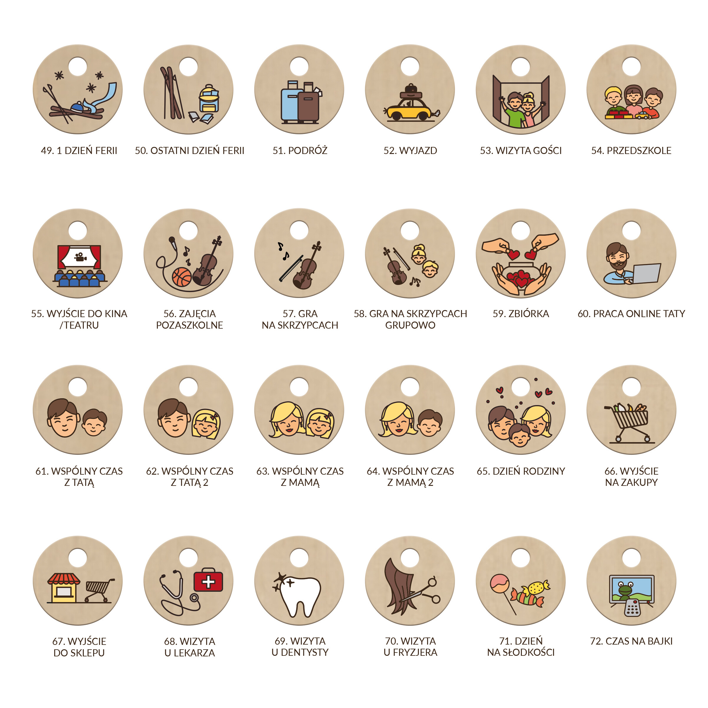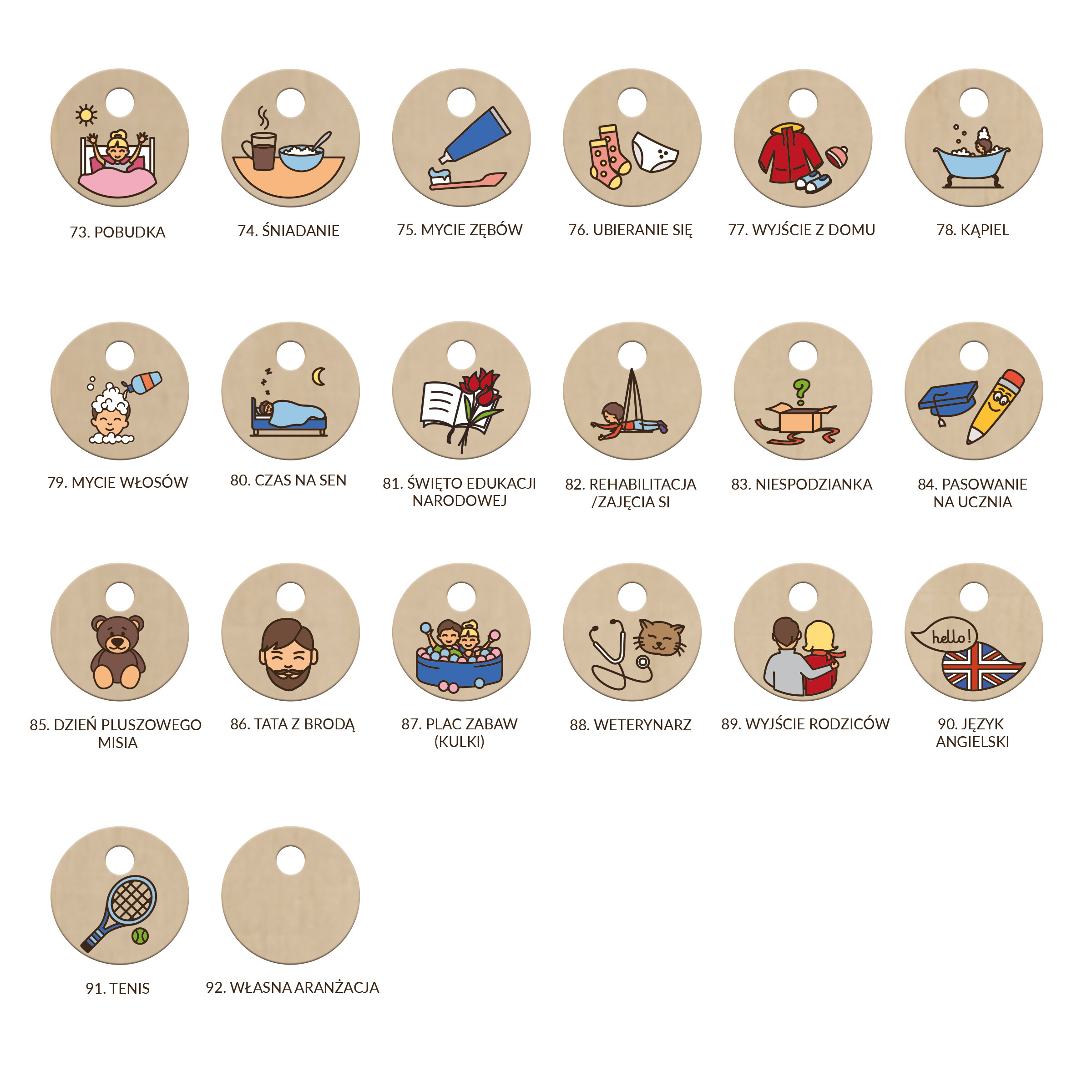 Można dokupić dodatkowe symbole, które uatrakcyjnią dzieciom kalendarz, ułatwią planowanie, odliczanie dni do.., itd.