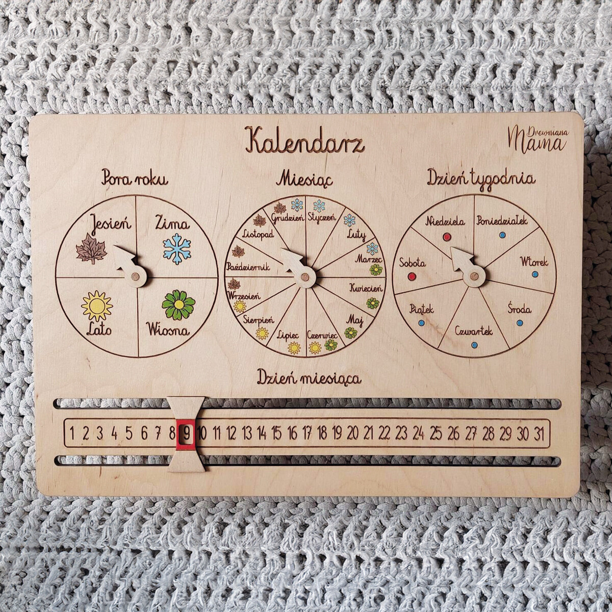 Drewniany kalendarz z dniami miesiąca, który w przejrzysty i prosty sposób pomoże dzieciom zrozumieć upływający czas.