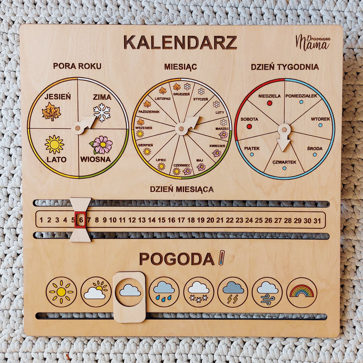 Drewniany kalendarz, który w przejrzysty i prosty sposób pomoże dzieciom zrozumieć upływający czas oraz odkryć zachodzące w przyrodzie zmiany.