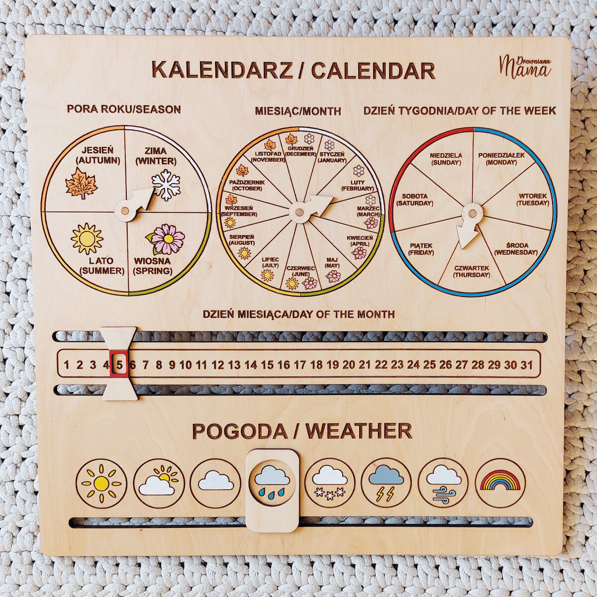 Kalendarz Dwujęzyczny Dni Miesiąca Pogoda - 44 - 43x42cm